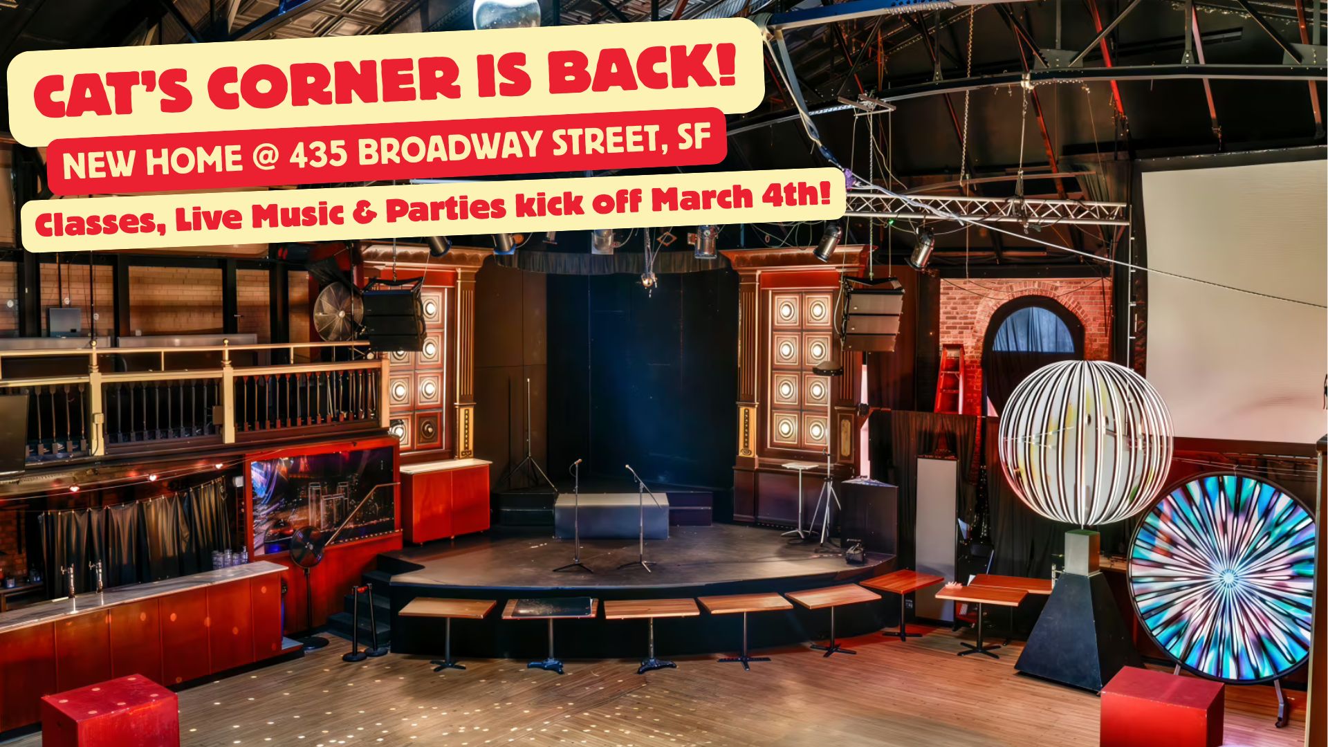 Cat’s Corner is San Francisco’s iconic Wednesday Night Swing Dance Party, known for its swing & Lindy Hop classes, live music with rotating bands, and a welcoming social atmosphere with cocktails, dining and good vibes.